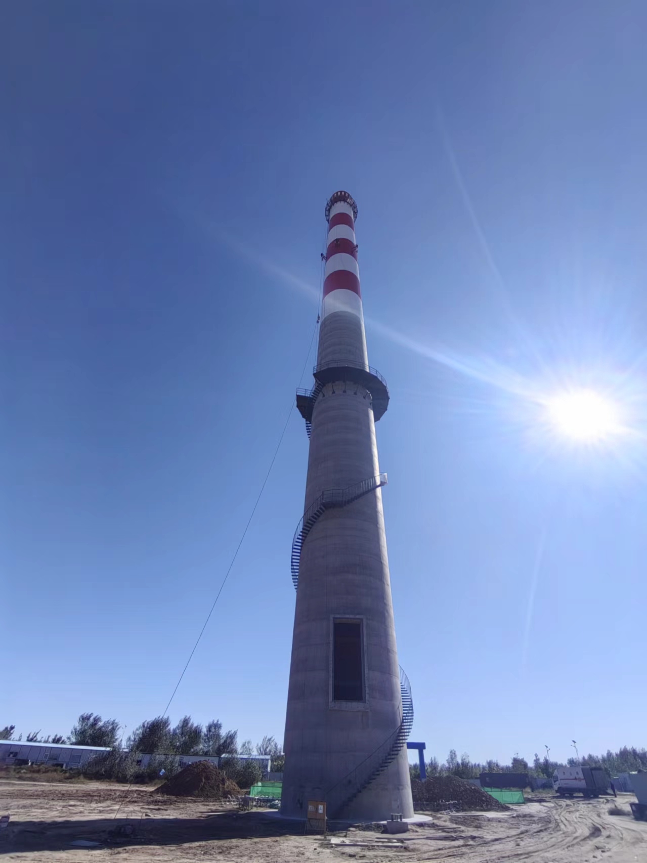 - 混凝土煙囪新建該混凝土煙囪新建工程的特殊性,在安全、快捷、方便的目標(biāo)下,根據(jù)本公司現(xiàn)場考察,依托本公司雄厚的技術(shù)實(shí)力和豐富的高空作業(yè)的經(jīng)驗(yàn),結(jié)合施工現(xiàn)場復(fù)雜的施工環(huán)境特制定如下施工方案